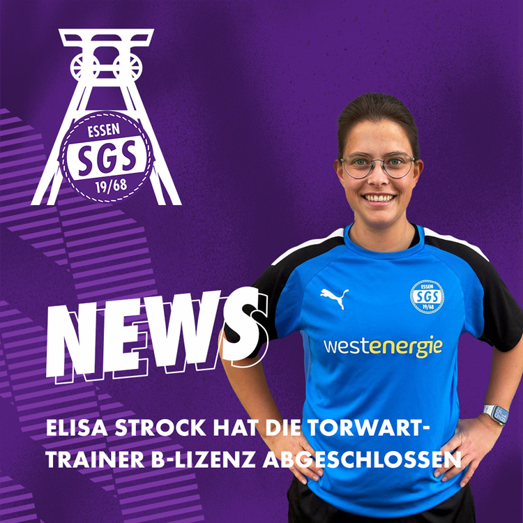 Gute Nachrichten aus dem Förderturm: Elisa Strock, Torwartkoordinatorin und -trainerin in der Jugendabteilung der SGS Essen hat in Frankfurt erfolgreich den Lehrgang zur Torwarttrainer B-Lizenz abgeschlossen.