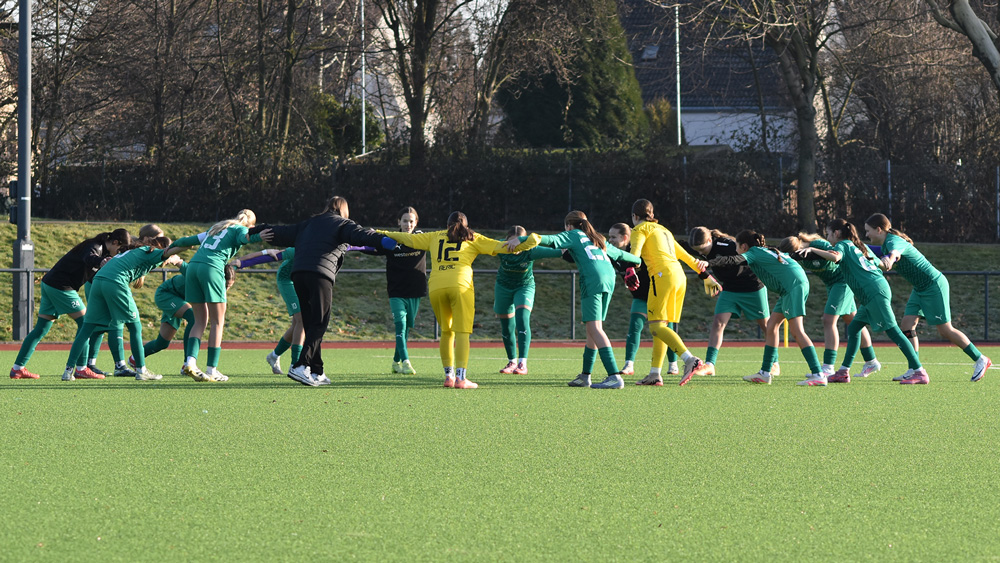 Nach knapp vier Wochen Pause war das Spiel gegen Rot-Weiß Oberhausen das erste Spiel unter freiem Himmel im Jahr 2026. RWO startete sehr defensiv in die Partie und lauerte auf Kontermöglichkeiten. Die U15 brauchte eine gewisse Zeit, um Lücken in der Abwehr zu finden. In der elften Minute wurde dann Hannah Ernst freigespielt, die zum 1:0 einschieben konnte. Kurz vor der Pause konnte Tilda Lukas einen schön vorgetragenen Angriff zum 2:0 verwandeln.