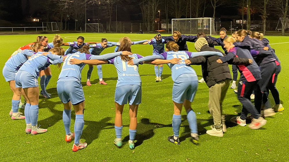 So waren es die Gastgeberinnen, die nach 20 Minuten den ersten Warnschuss abgaben, doch Luisa Palmen lente den Schlenzer aus 18 Metern stark über die Latte. Zehn Minuten später landete eine kurz ausgeführte Ecke der Gladbacherinnen über Umwege im Essener Kasten.