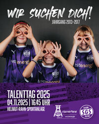Komm zum SGS-Talenttag am 04.11.2025 von 16.45 - 18.15 Uhr! Wir suchen neue Talente mit Jahrgang 2013 - 2017.
