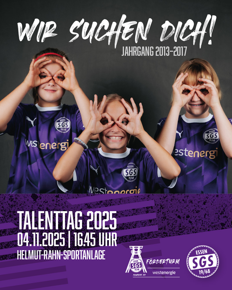 Die SGS Essen richtet wieder ein Sichtungstraining für fußballbegeisterte Mädchen aus. Du willst dribbeln, sprinten und Vollgas geben? Dann bist du bei uns genau richtig!