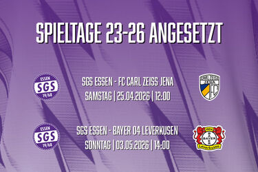 Die letzten vier Spieltage der Saison 2025/2026 wurden vom DFB zeitgenau angesetzt. Für die SGS stehen im Kampf um den Klassenerhalt noch drei Heimspiele und eine Partie in der Fremde auf dem Programm.