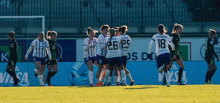 Großer Jubel bei der SGS! Nach dem 1:1 beim VfL Wolfsburg lagen sich Spielerinnen und Trainerteam in den Armen und feierten den Punktgewinn beim Tabellenzweiten.Neben der ohnehin schon langen Liste an fehlenden Spielerinnen, mussten die Essenerinnen im AOK-Stadion auch noch auf Vanessa Fürst …