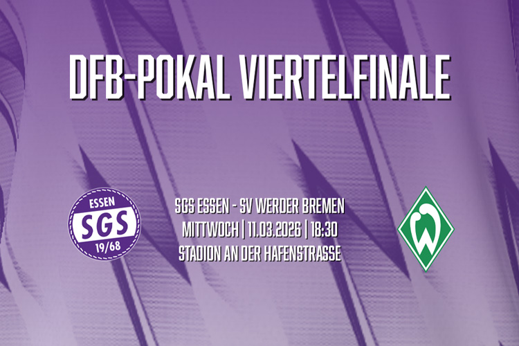 Das Viertelfinale im DFB-Pokal, welches die SGS Essen gegen den SV Werder Bremen austragen wird, wurde vom DFB zeitgenau angesetzt. Die Partie findet am Mittwoch, den 11. März statt und wird zudem live bei Sky übertragen.