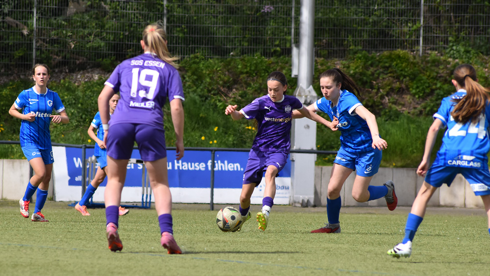 Nach zwei spielfreien Wochenenden startete die SGS sehr druckvoll in die Partie und hatte von Beginn an gute Ballbesitzphasen. Bereits in der sechsten Minute konnte Ceylin Gül einen gut getimten Pass auf Franziska Konert spielen, die zum 1:0 einschob. Nur fünf Minuten später wurde Tilda Lukas zentral vor dem Gästestrafraum nicht angegriffen, sodass sie aus knapp 25 Metern überlegt zum 2:0 traf. Die Essenerinnen blieben weiter spielbestimmend und hatten durch Franziska Konert den dritten Treffer auf dem Fuß, ihre Direktabnahme nach Freistoßflanke von Eda Yalcin landetet aber am Pfosten.